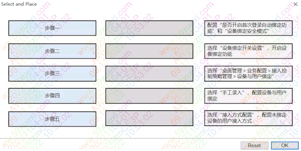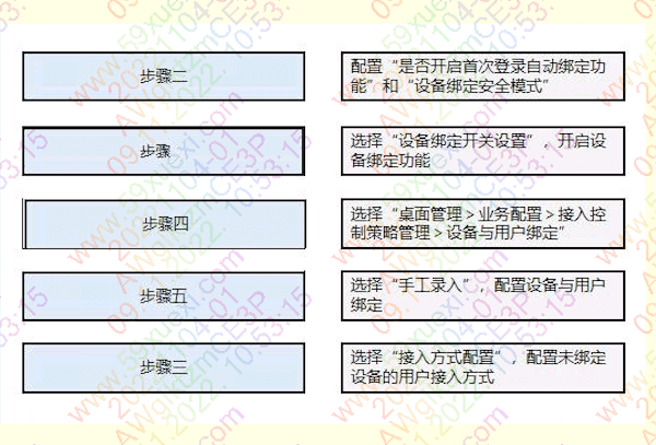 9、在FusionAccess中,配置设备与用户绑定”的接入控制策略需进行多项操作,将以下操作顺序与其操作对应起来: