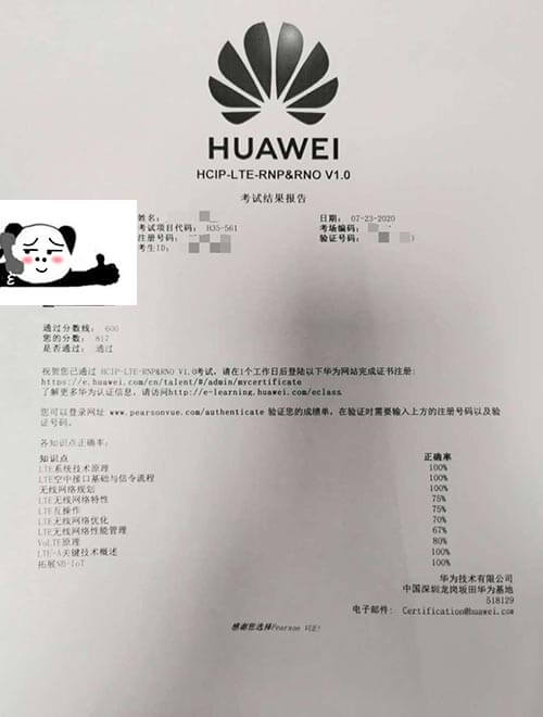 恭喜59学习网考生参加HCIP-LTE-RNP&RNO V1.0考试7月23日高分通过!