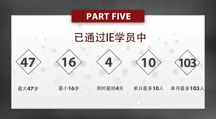 - 2019年 教学里程碑:累计培养了1951位IE 教学历程碑:1年培养844位IE专家人才 在线听课人数突破31万+ 新增VIP学员超过1.3万 荣获国家高新技术企业资质 腾讯云官方授权合作伙伴 学员覆盖全球150个国家和地区 获选腾讯课堂严选课程认证(6万家机构严选4家) 连续第三年获得腾讯课堂年度官方认证机构 新课程上线:《2020新版思科认证系列课程》新课程上线:《CISP注册信息安全专家》 新课程上线:《CISP注册信息安全专家》 新课程上线:《新版华为认证V3.0系列课程》 新课程上线:《华为安全融合实战课程》 新课程上线:《售前售后实战PLUS系列课》 新课程上线:《腾讯云从业者认证系列课》